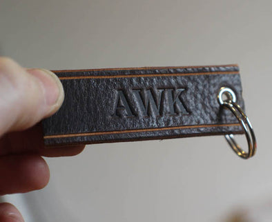 The picture here is simple but effective keyring on vegetable tanned leather. The letters are embossed into the leather for a really nice permanent effect. This is currently listed in the 'Gifts for Him' section, but we will be putting a new category on soon which will have many more personalised leather gifts.